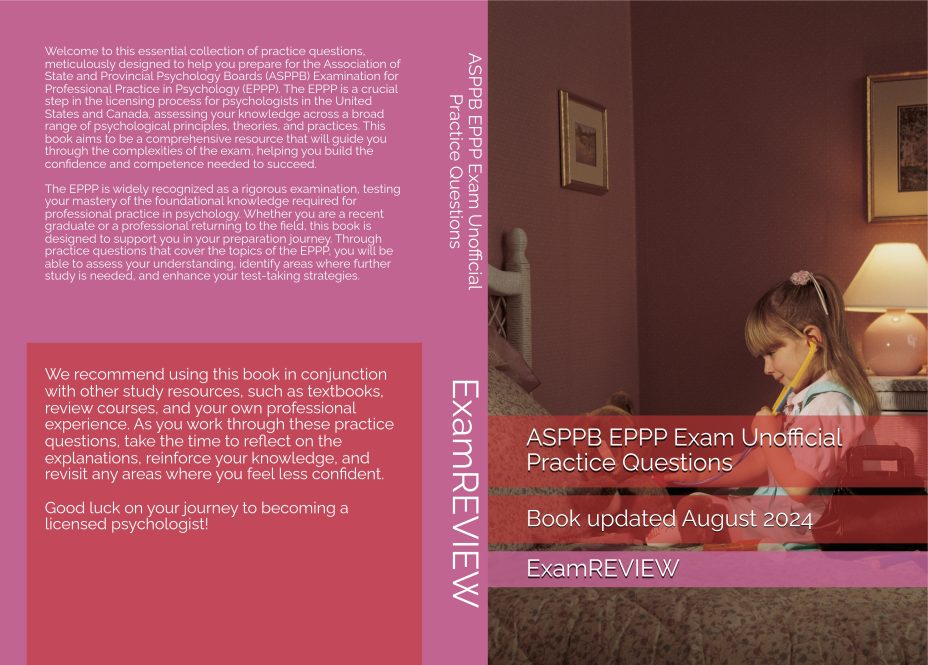 Welcome to this essential collection of practice questions, meticulously designed to help you prepare for the Association of State and Provincial Psychology Boards (ASPPB) Examination for Professional Practice in Psychology (EPPP). The EPPP is a crucial step in the licensing process for psychologists in the United States and Canada, assessing your knowledge across a broad range of psychological principles, theories, and practices. This book aims to be a comprehensive resource that will guide you through the complexities of the exam, helping you build the confidence and competence needed to succeed.
